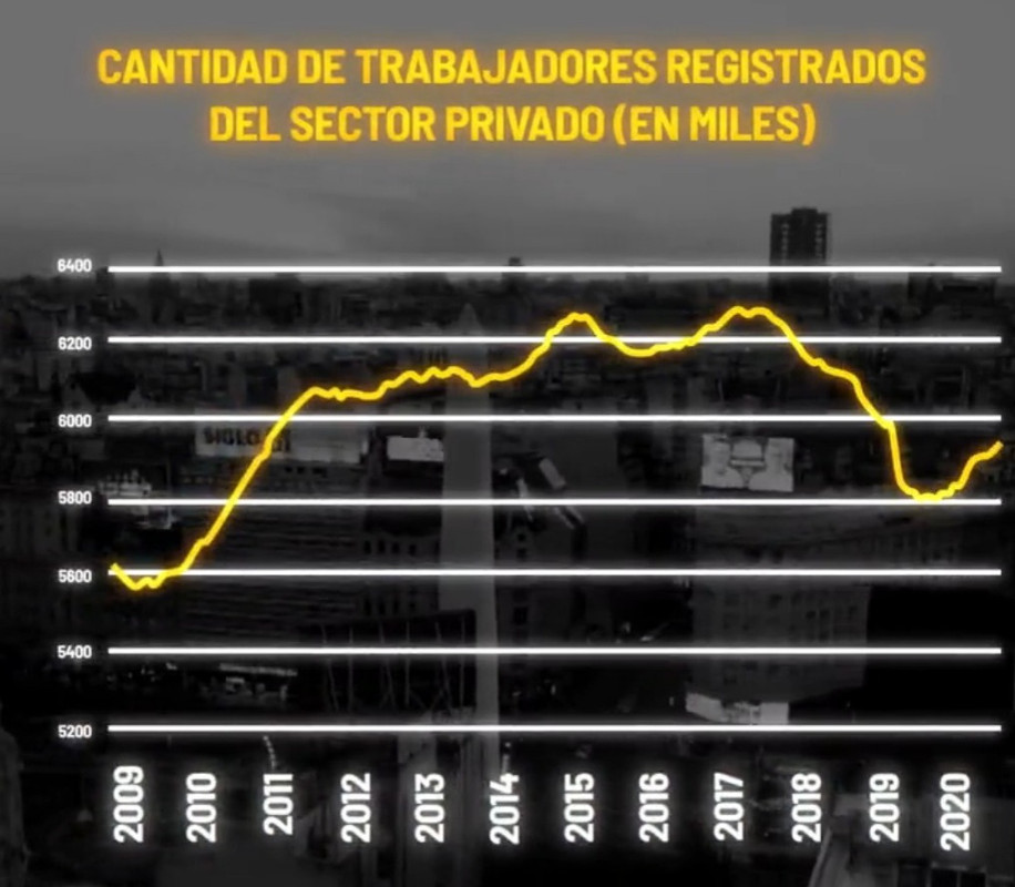 Primero, contaría con 605.237 empleados más en el sector privado. Ese aumento haría que, del total de los 5.938.724 trabajadores actuales, pasemos a un total de 6.543.961 argentinos con trabajo formadil privado. Ese salto de nuevos empleos equivale a todos los puestos de trabajo que se generaron (netos) en los 13 últimos años.
