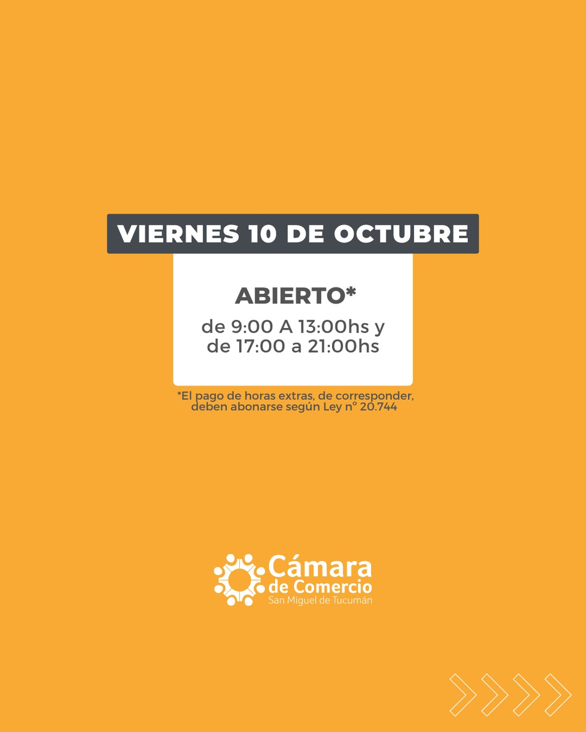 La Cámara de Comercio de San Miguel de Tucumán confirmó que los comercios locales mantendrán sus puertas abiertas durante el feriado nacional del viernes 10 de octubre, correspondiente al "Día del Respeto a la Diversidad Cultural". La decisión responde a la proximidad con la celebración del Día de la Madre, que se conmemora una semana después.