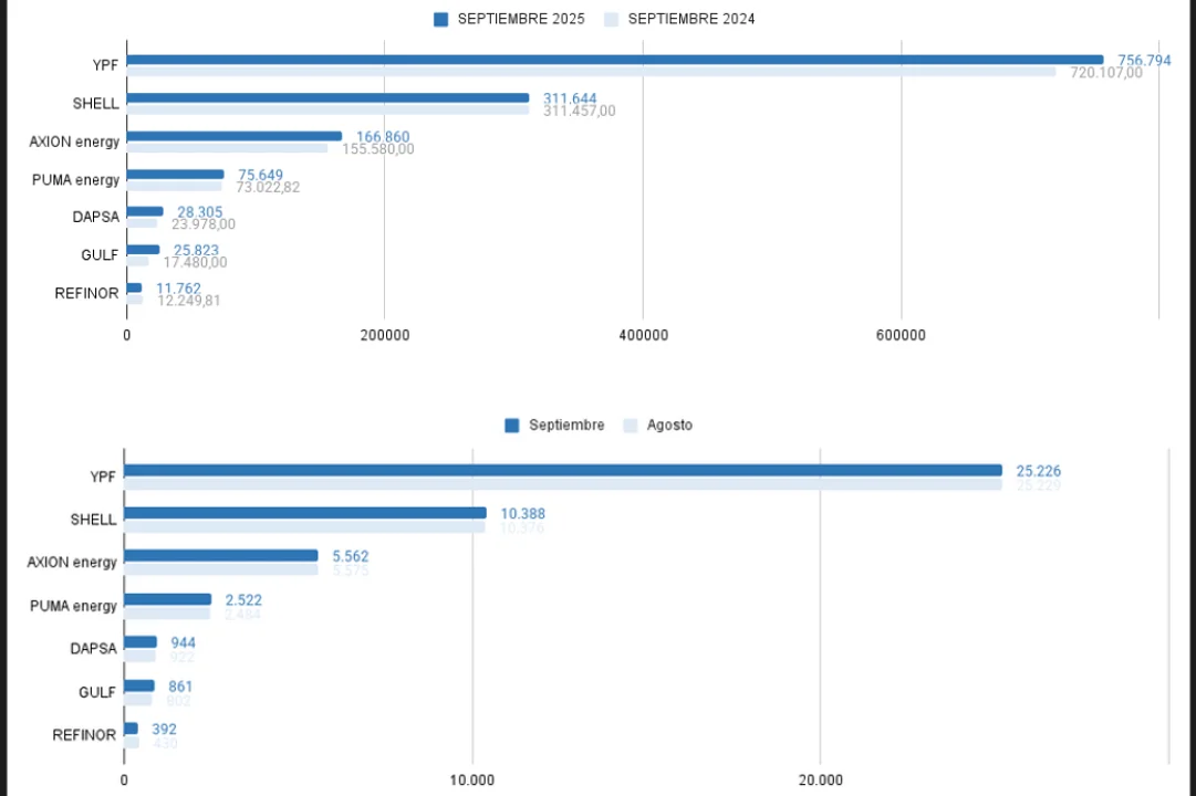 Un informe sectorial revela que 18 de 24 distritos tuvieron ventas positivas en septiembre interanual. YPF se consolidó como la empresa con mayor volumen despachado, mientras Gulf Oil fue la de mayor crecimiento.