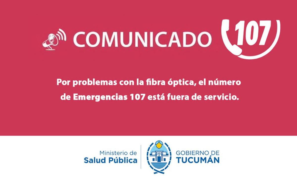 El Ministerio de Salud Pública informó este martes 6 de enero de 2026 que la línea telefónica de emergencias 107 se encuentra momentáneamente fuera de servicio debido a problemas técnicos.