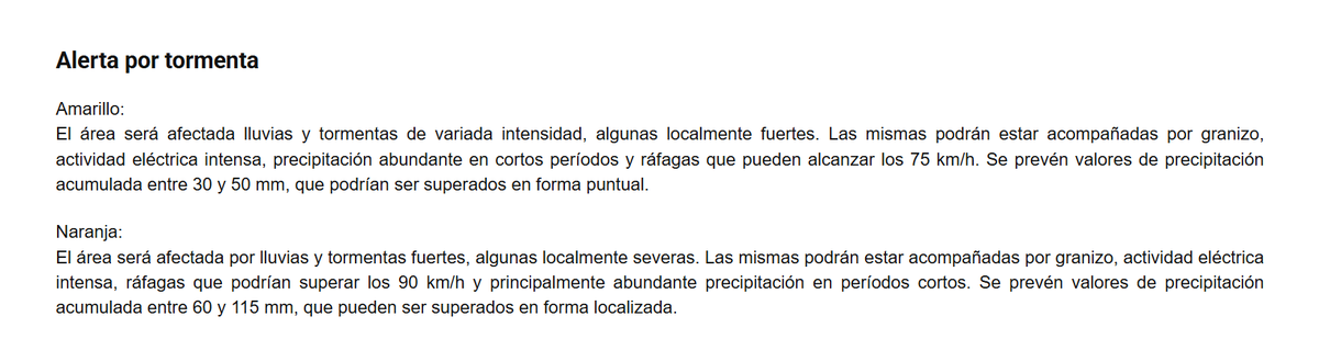 El organismo advirtió además que las condiciones adversas se extenderían hasta el inicio de la semana. Para la madrugada y la mañana del lunes 19 de enero, el SMN mantiene un alerta amarillo por tormentas en la región.