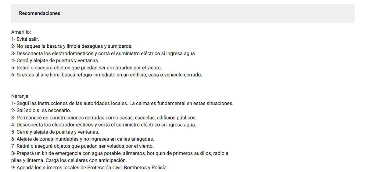 Las autoridades recomiendan a la población mantenerse informada a través de los canales oficiales, evitar la circulación innecesaria durante los momentos de mayor intensidad de las lluvias y tomar precauciones ante posibles ráfagas de viento, caída de ramas y acumulación de agua en calles y rutas.