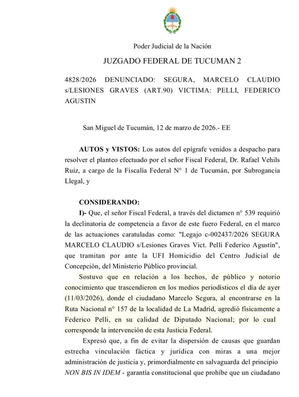 La investigación se encuentra actualmente caratulada como “Segura, Marcelo Claudio s/ Lesiones Graves – víctima: Pelli, Federico Agustín”, bajo el legajo c-002437/2026.