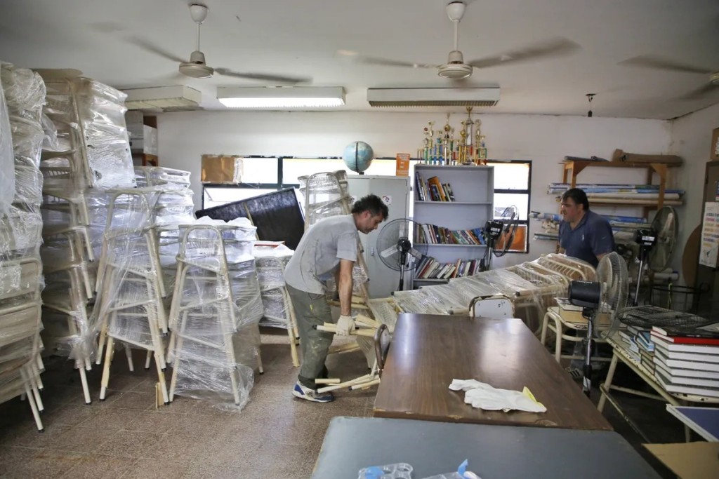 Entregaron mobiliario escolar en La Madrid y garantizan el regreso a clases el lunes tras las inundaciones