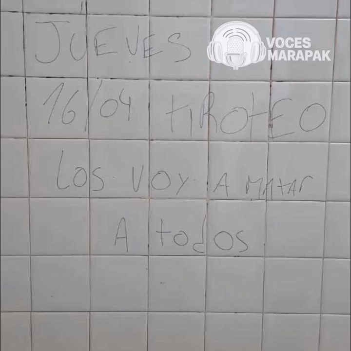 La noche del miércoles 15 de abril, la comunidad educativa de la Escuela Técnica N.º 1 de la ciudad de Alberdi atravesó momentos de máxima tensión. Personal del establecimiento encontró una inscripción en uno de los sanitarios que decía textualmente: “Los voy a matar a todos”. La advertencia, vinculada a un posible ataque armado, activó de inmediato los protocolos de seguridad y motivó la intervención de las fuerzas policiales en el lugar.