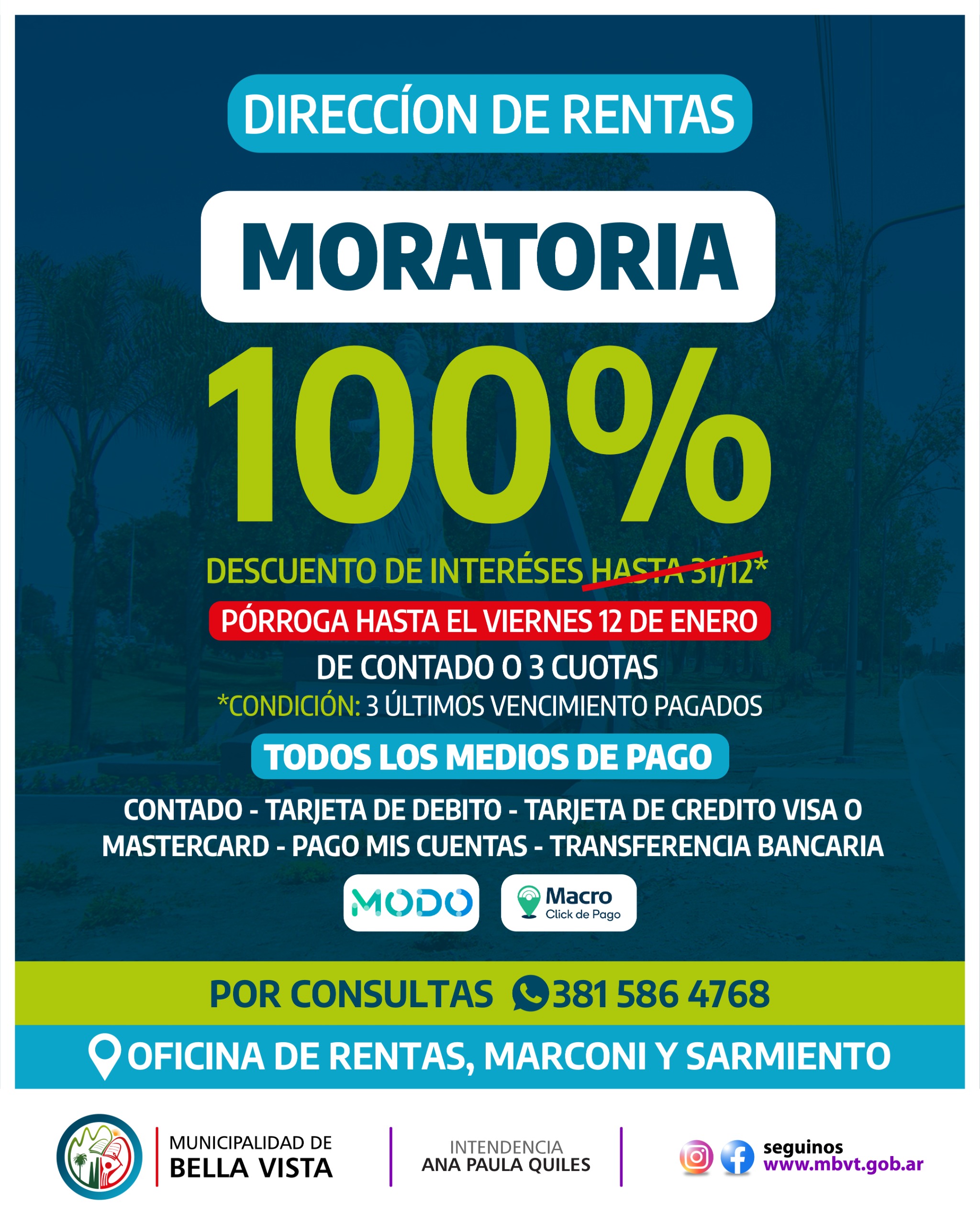 Bella Vista prorrogó la moratoria hasta el 12 de enero